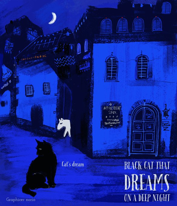 深い深い夜に猫だけが知ってるまち 妖精も眠る夜 プルシャンブルー #illustlation #drawing #illustrationart #graphicart #picturebook #catlove #ChildrensBooks #Moonlight #えほん #猫好き