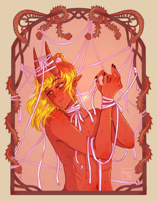 Omg thanks for the input, here he is now all colored! This is Luxury, a cleric of eilistraee n its his goddess given duty to make sure you have a good time #dnd #dndart #conceptart #ttrpg twitter.com/GrassGrows/s…