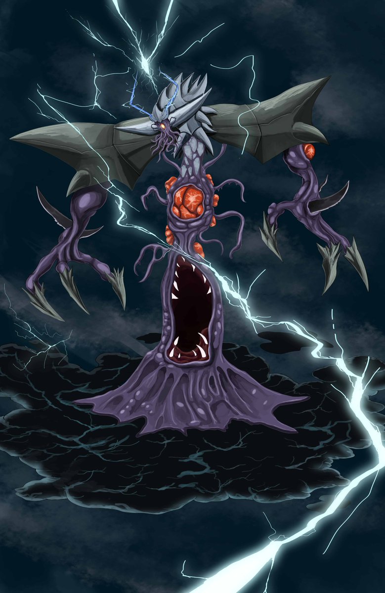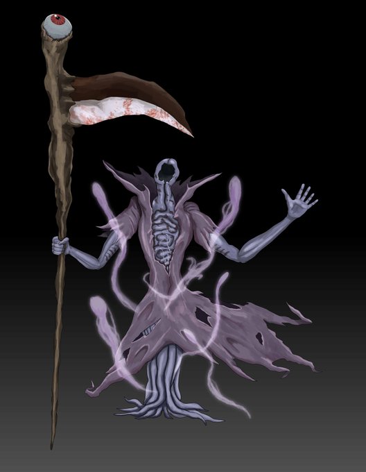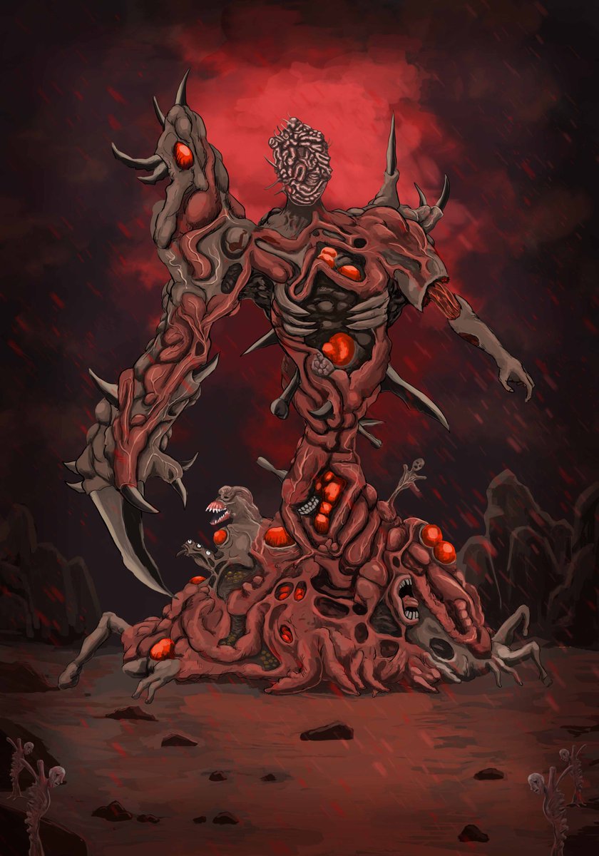 邪神 ジャグ・ニルデス #イラスト #ガオクリーチャー #クリーチャー 宇宙から飛来した暗黒の神。あたりに闇の瘴気を生み出し生物を魔物へと変えてしまう。凄まじい暗黒のエネルギーで世界を崩壊寸前まで追い詰めた。 5人の王によって封印され今もなお卵の中で復活を待っている。