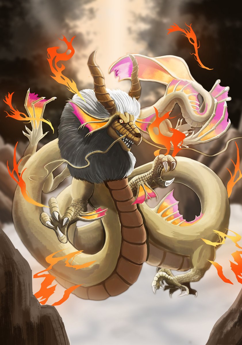 竜王アグニス #イラスト #ガオクリーチャー 怒れる憤怒の化身。すべてを焼き尽くすまでその咆哮が鳴りやむことはない。