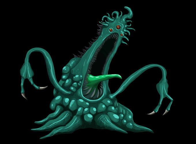 ガブリット・オーバー #イラスト #ガオクリーチャー 海辺付近に生息する軟体系の魔物。 大きな口と触手で見るものをすべて口に入れてしまう。 原種のガブリットより凶暴で大型なことからこの名前で呼ばれている。