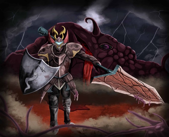 12 47 邪神 ジャグ・ニルデス #イラスト #ガオクリーチャー #クリーチャー 宇宙から飛来した暗黒の神。あたりに闇の瘴気を生み出し生物を魔物へと変えてしまう。凄まじい暗黒のエネルギーで世界を崩壊寸前まで追い詰めた。 5人の王によって封印され今もなお卵の中で復活を待っている。 23/05/13 20:09
