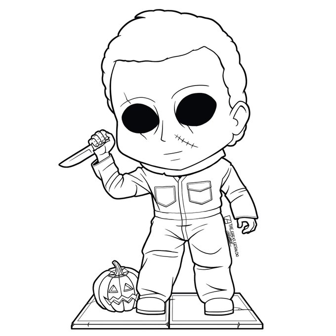 Inktober 2020 Day 5 "Blade" featuring Michael Myers from the movie Halloween. #inktober2020 #inktober #halloween #michaelmyers #horror #horrormovies #chibi #chibiart #chibidrawing #cute #art #drawing #digitalart #illustrationdrawing #illustrations #comicart