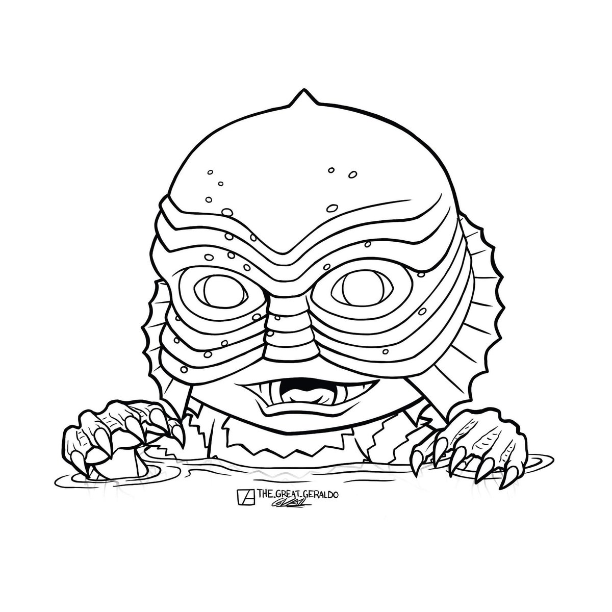 Inktober 2020 Day 12 "Slippery" featuring the creature from the black lagoon! #inktober2020 #inktober #lineart #chibi #chibiart #chibidrawing #cute #drawing #illustrationdrawing #illustrations #comicart #creature #creaturefromtheblacklagoon #universalmonsters #universalstudios