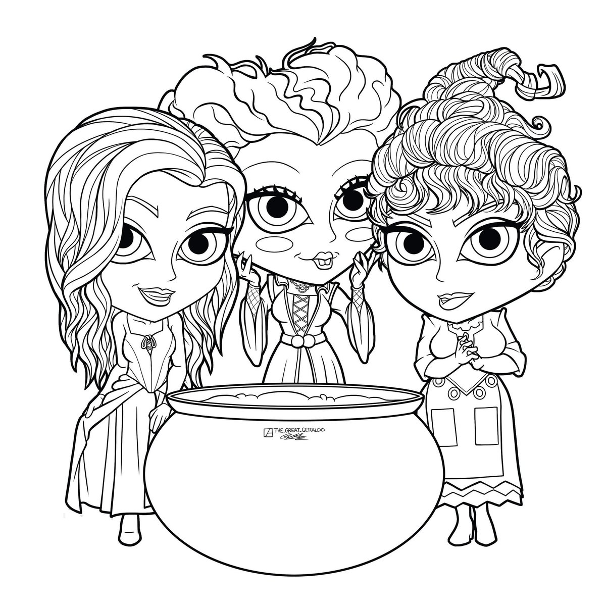 Inktober 2020 Day 22 "chef" featuring the Sanderson sisters of Hocus Pocus! (this one took 3 times as long.. wonder why? lol) #inktober #inktober2020 #chibi #chibiart #drawings #lineart #comicart #illustrations #digitalart #cute #drawing #hocuspocus #sandersonsisters #witch