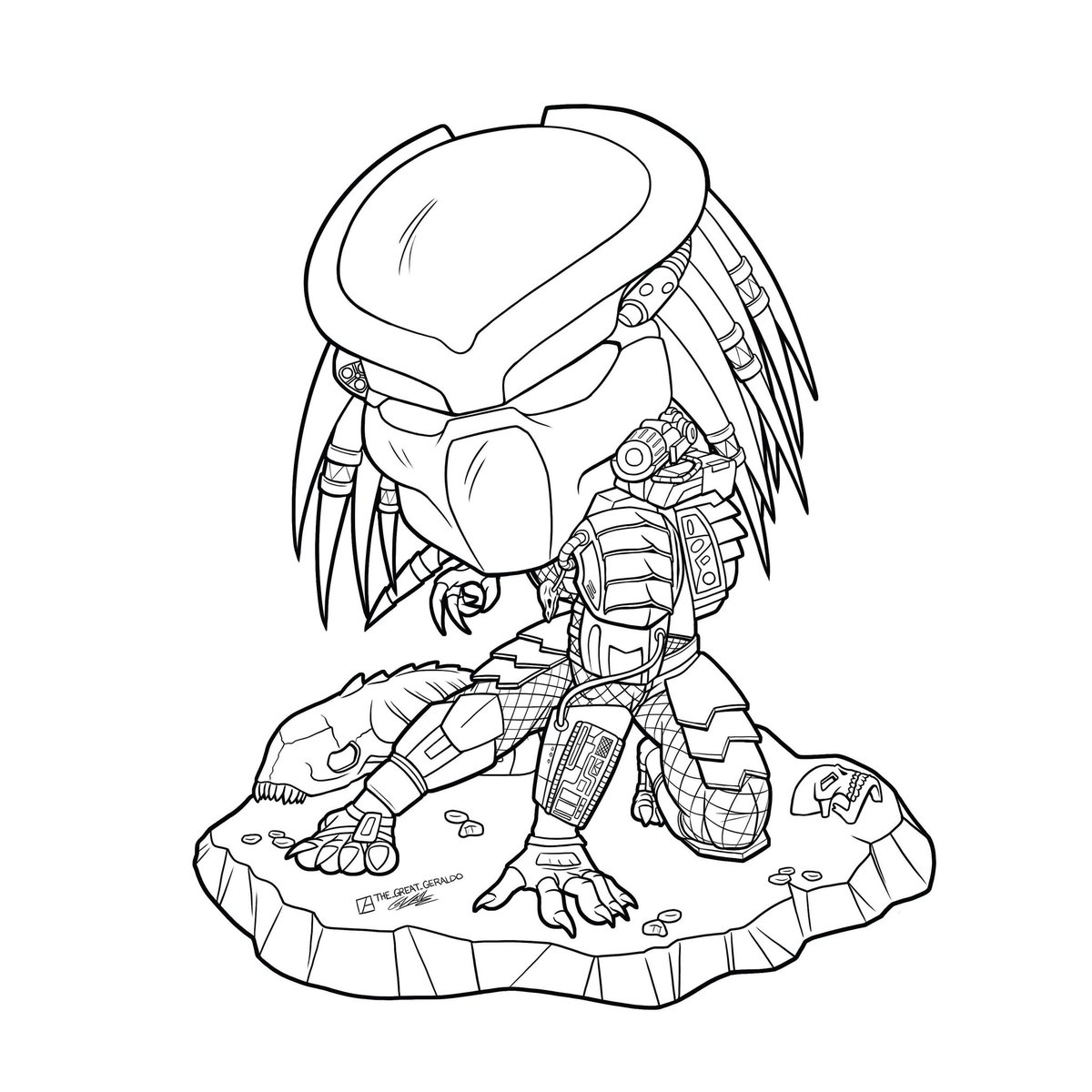 Inktober 2020 Day 26 "hide" featuring the Predator. #inktober #inktober2020 #chibiart #chibi #chibidrawing #drawings #art #cute #comicart #illustrations #illustrationdrawing #lineart #digitalart #predator #alienvspredator #predators #alien #hide #hunter