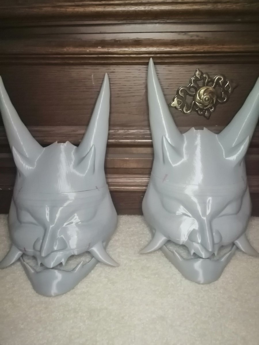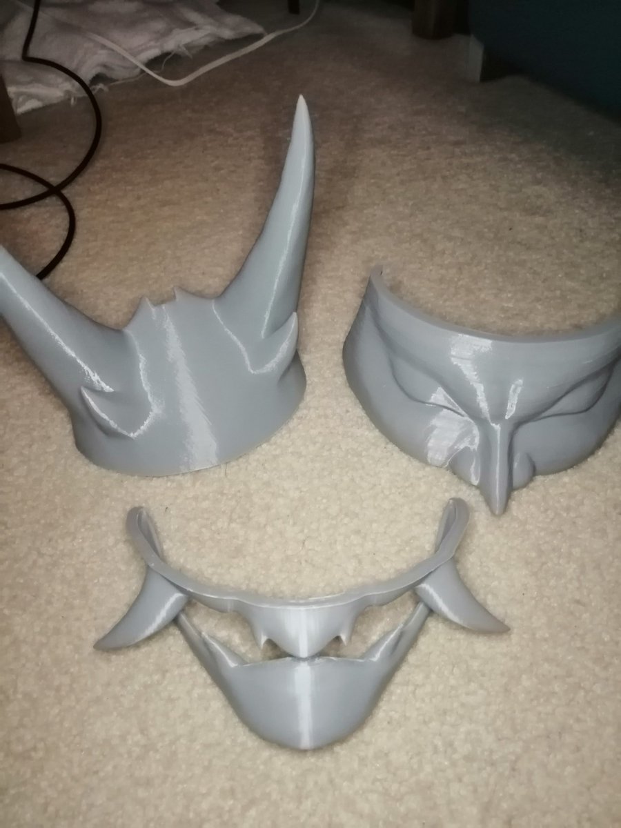 I forgot to post a pic of my 3D printed Xiao mask pieces. That mouth piece was the one giving me all the issues. Looking forward to continuing to work on it. #cosplay #GenshinImpact #xiao