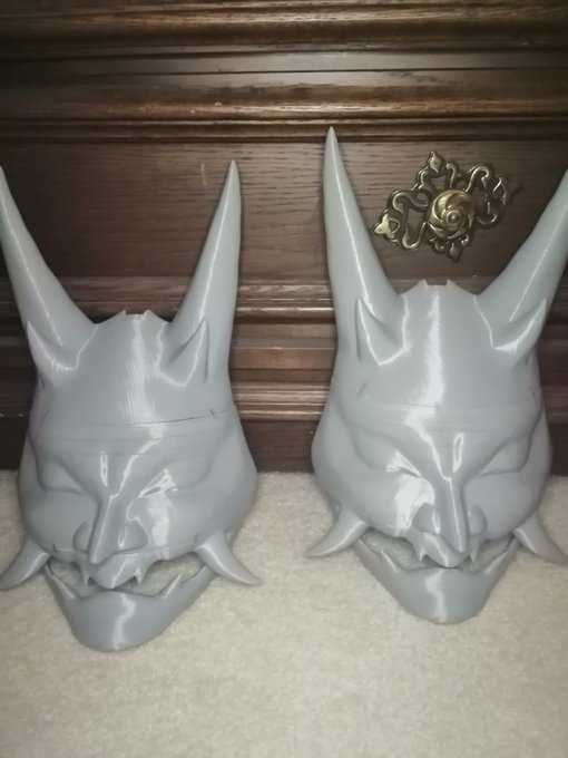 Glued together my mask pieces for Xiao. Yes I made 2, just in case I fucked up the first 😂 Next I have to cut out the eyes, then lots of sanding and priming. #cosplay #GenshinImpact #xiao