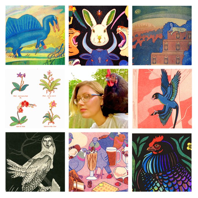 Joining in on #PortfolioDay I'm Greer, an illustrator who specializes in traditional risograph prints 🖌️🦕 I love animals, natural history, and horror!
