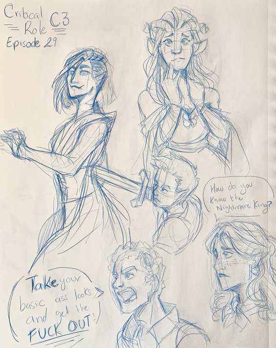 Critical Role C3 episode 31 live doodles- I had these done since last week and then was bedridden because of a twisted ankle 😒 Anyways, smiley day to yall ;) #criticalrolefanart #criticalrolespoilers