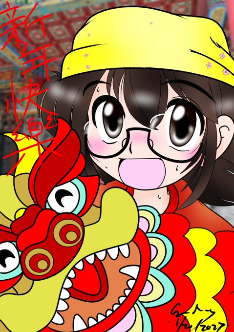 #週末ガルパンお絵描き120分一本勝負 #週末ガルパンお絵描き120分一本勝負20230120 #新年快樂 #恭喜發財 王大河、獅子舞が得意そう。