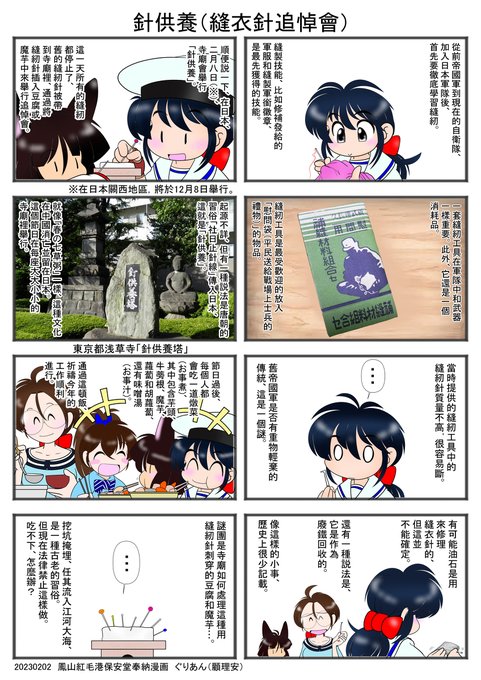 0 1 針供養 (中文Only) #漫画 #針供養 #鳳山紅毛港保安堂 #蓬(駆逐艦) #オリジナル艦娘 #台湾 #日台友好 pixiv.net/artworks/10503… 23/02/03 00:23