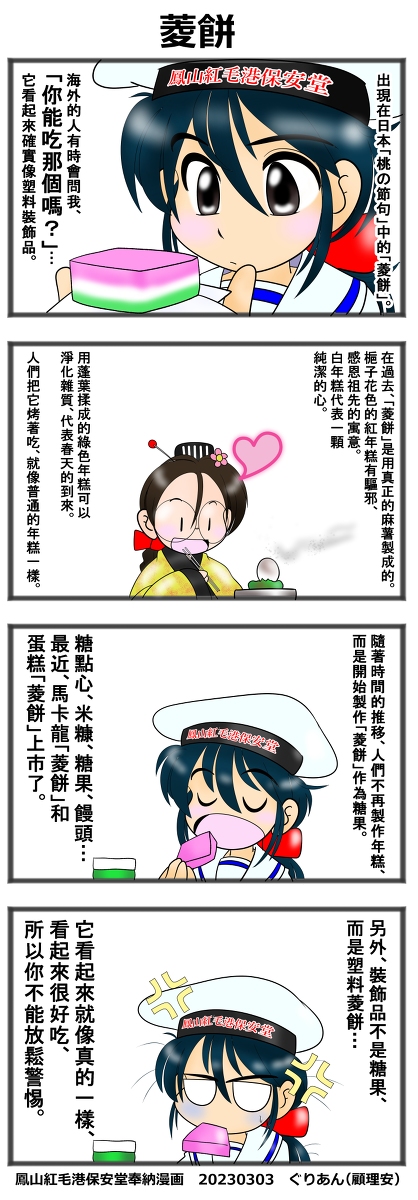 菱餅について(中文only) #漫画 #菱餅 #桃の節句 #鳳山紅毛港保安堂 #日台友好 #蓬(駆逐艦) pixiv.net/artworks/10585…
