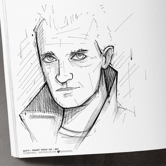 Fanart Friday #25 Roy. A quick "no undo" sketch. #FanArtFriday #Fanart #RutgerHauer #Bladerunner 😢🌧️
