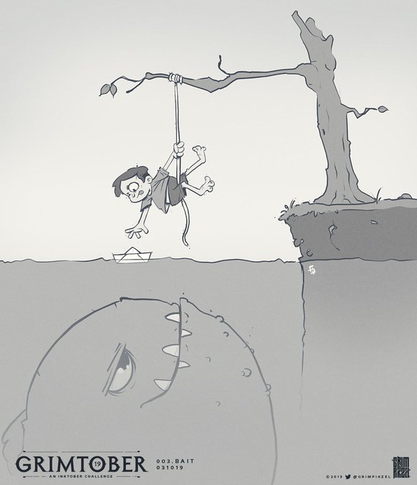 Day 3 : Bait. Managed a 20 min break to sketch day 3. #inktober #Inktober2019 #inktoberday3 #grimtober