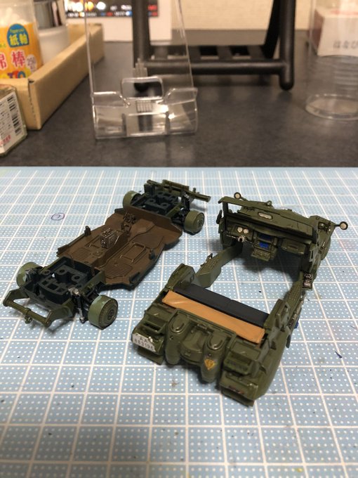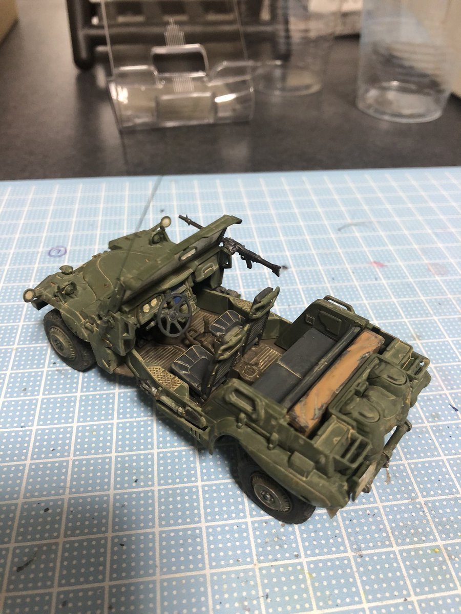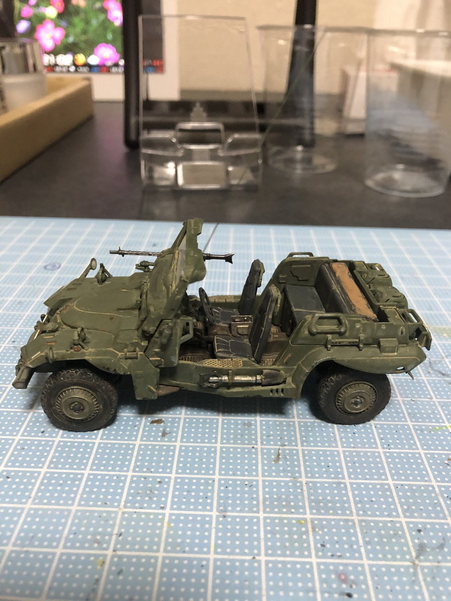 0 2 #サイクロプス隊 ジープのスミ入れ 終わりました。 乾燥したら、トップコートして ウェザリングします。 苦手なんだよな〜 #ガンプラ 19/12/14 21:13
