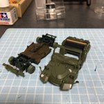#サイクロプス隊 ジープのスミ入れ 終わりました。 乾燥したら、トップコートして ウェザリングします。 苦手なんだよな〜 #ガンプラ
