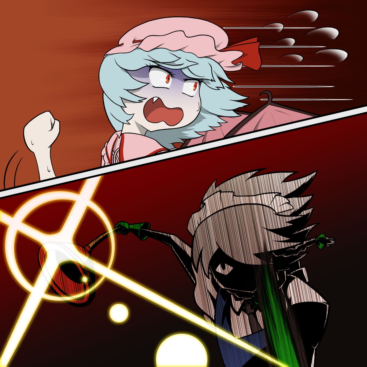3 11 #7月9日はレミリアの日 以前描いたトイレスッポンを持った咲夜さんに追い回されるおぜうの再掲です 23/07/09 21:57