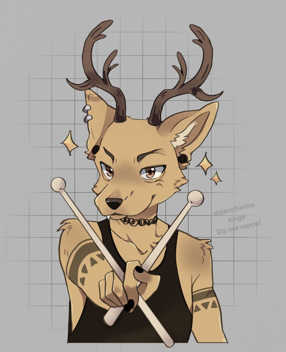 9 21 🥁🦌LOUIS 🦌🥁 Band is coming together 🖤 Didn’t like his sketch, but I’m happy with how he turned out! Yes him and Haru have fangs in this AU. They are omnivores :) ⚠️ Do not Repost ⚠️ #beastarsfanart #BEASTARS #BEASTARS展 #furryartwork #furryfandom #furryart #furry 21/12/31 04:56