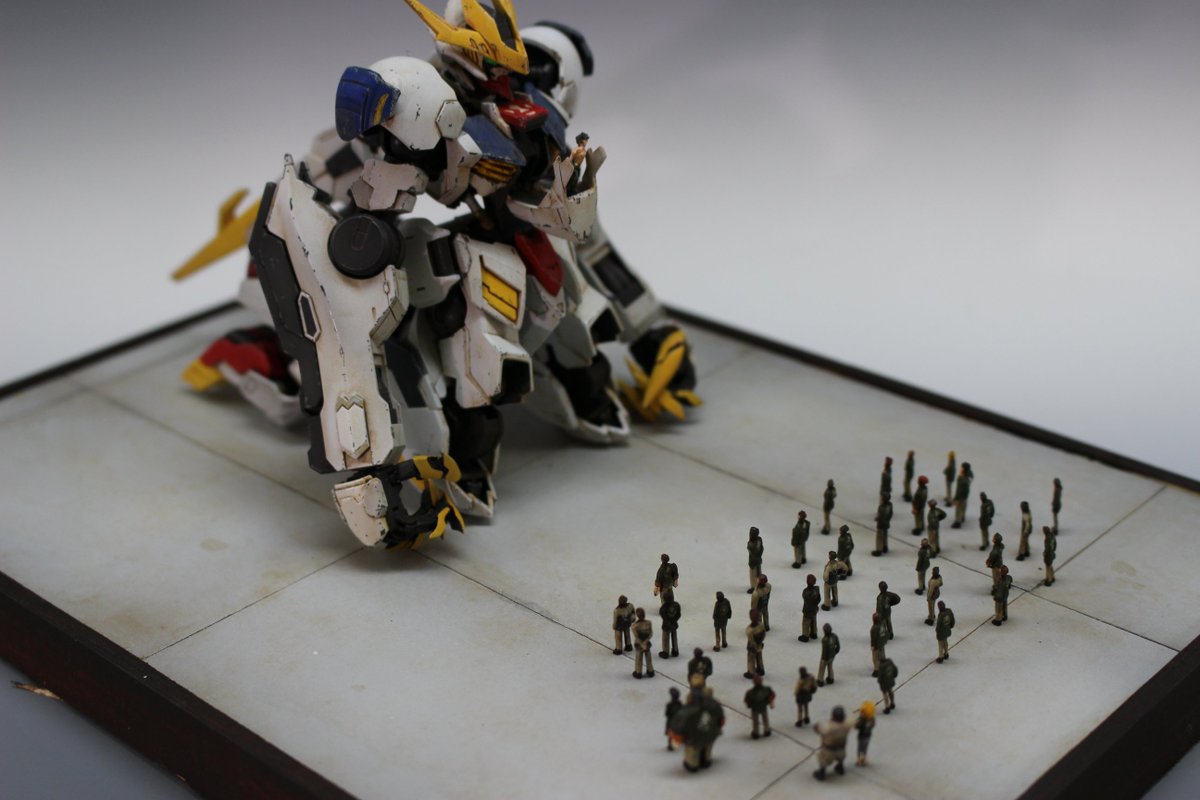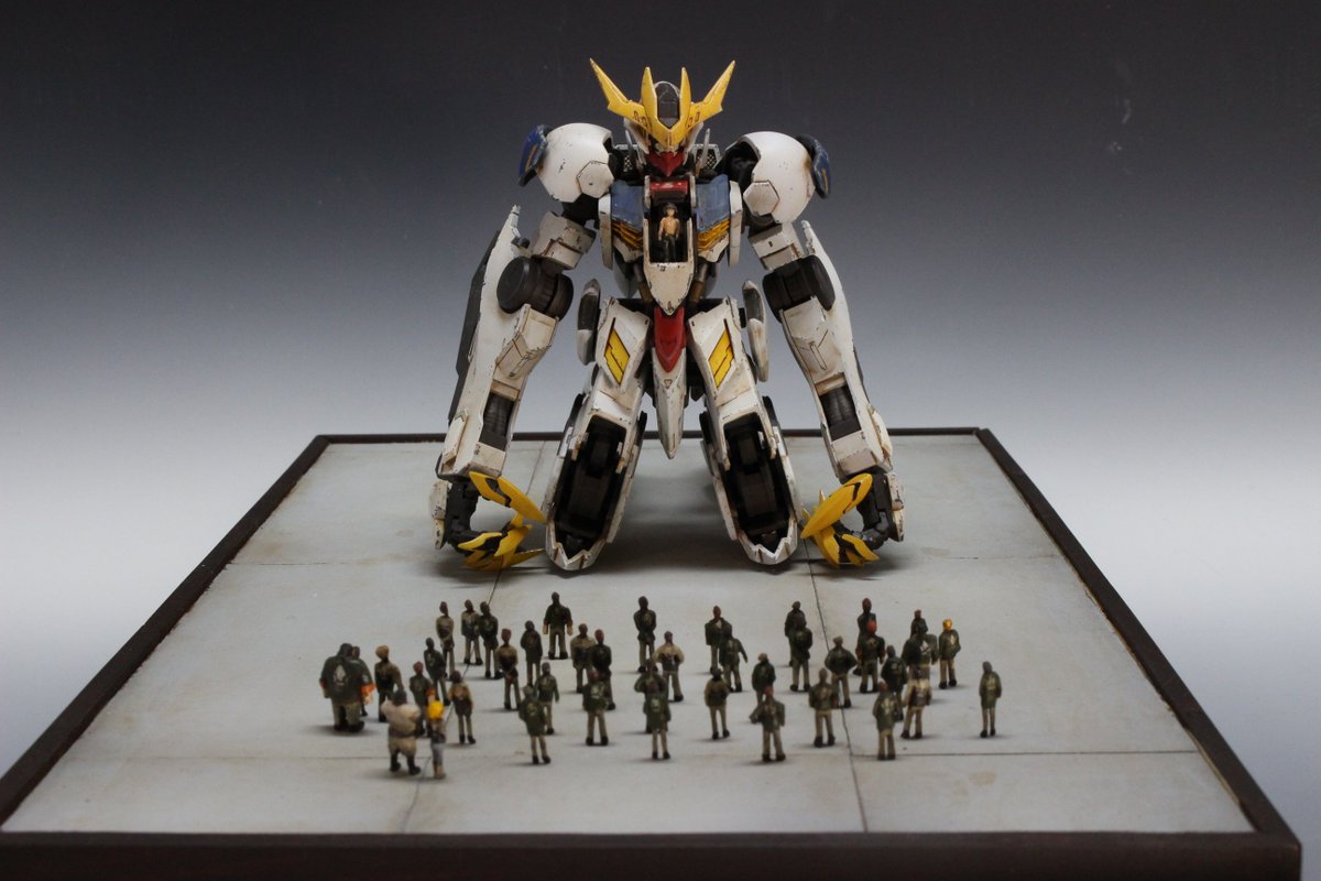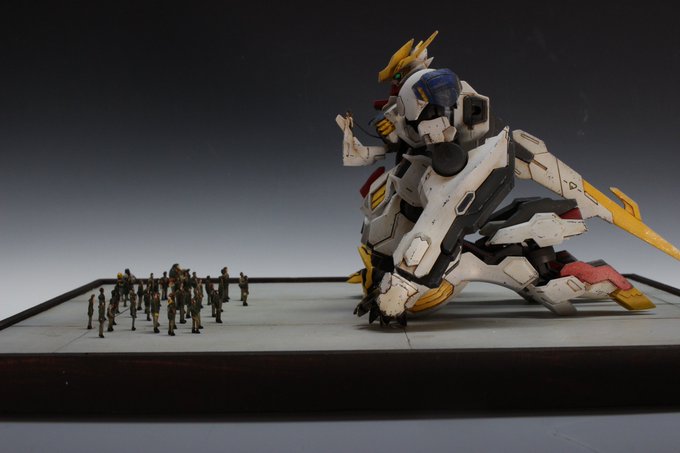 完成! レジン複製・ウェザリング仕上げ・フィギュア製作・ジオラマ製作これら全部初チャレンジという記念すべき作品になりました。 やればできるもんだ ! 団員が少ないのはご愛嬌ということで(^^;) #ガンプラの画像貼るとRTされると聞いて #鉄血のオルフェンズ