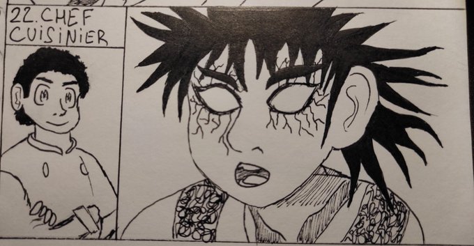 Inktober 22 : chef cuisinier #inktober2020 Le boss de la cuisine franchement allez lire toriko même si le mangaka avait des vidéo pedopornographique et j'ai fait c'est 2 version même si la deuxième on l'a vois presque pas
