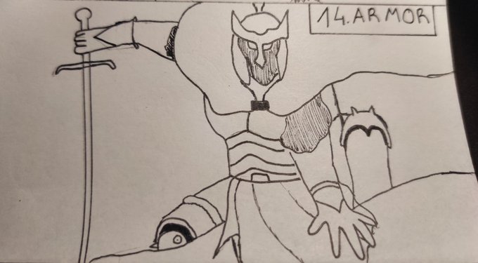 Inktober 14 : armure #inktober2020 Bon de base je voulais faire la berserker armor mais trop complex après celle de al de fma mais trop connu puis au final daryun de Arslan chui assez fier de la jambe à gauche et le torse mais le reste kk