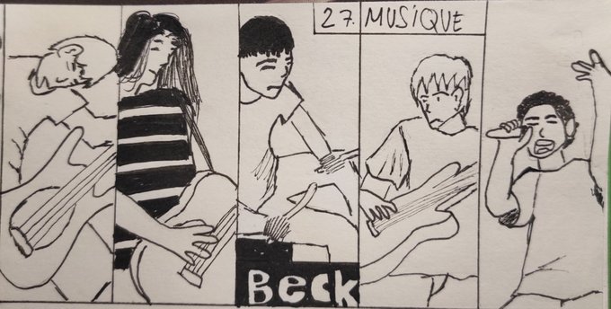 Inktober 27 : musique #inktober2020 Bon jarrive pas à savoir si c'est bien ou pas mais c'est tellement le meilleur manga de musique je pense les musique sont giga bine et en plus c'est grave une belle histoire