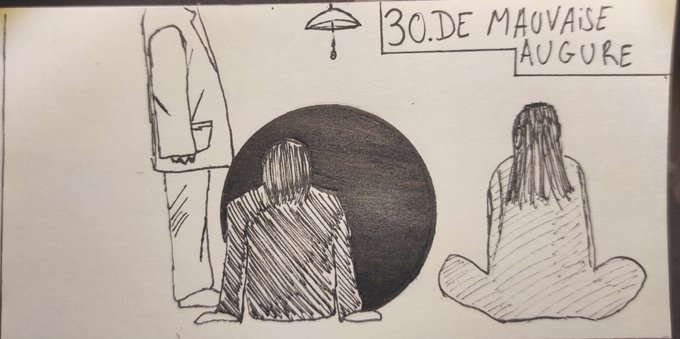 Inktober 30 : mauvaise augure #inktober2020 Bon demain dernier jour et j'avais pas trop d'idée mais dans ce manga quand t'arrive ici tes pas tres content quand tu said pourquoi t'es la donc voilan
