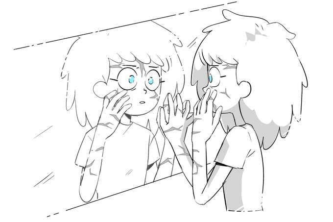 Awesome kofi commission by @tohrkgk 'Sometimes you can sense her...' Timeskip Anne being 'haunted' by her 13 year old self.. #Amphibia #amphibiafanart #AnneBoonchuy