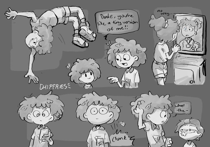 Commission by @ChipFries_ . Thanks again! Anne parkouring, Anne meeting her chibi self, Timeskip Anne discovering she still has her powers... and...a Marky Wu surprise (( Anne's hair can hide anything, eh @jopajopovna1 ?)) #amphibiafanart #Amphibia #AnneBoonchuy