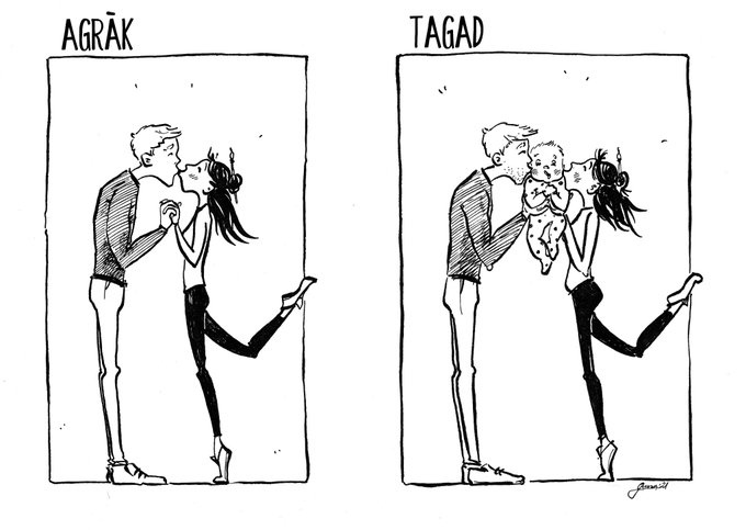 Ir klāt pirmais oktobris un tas nozīmē Tušas Oktobri!!! 🥳 Man droši vien nebūs laika, lai zīmētu katru dienu, bet vismaz dažas tušas karikatūras es gribētu šogad izveidot 😊🤪 Pirmā: Agrāk un Tagad 😁 #TikDaudzBuču ❤ #Inktober2021#inktober#TušasOktobris