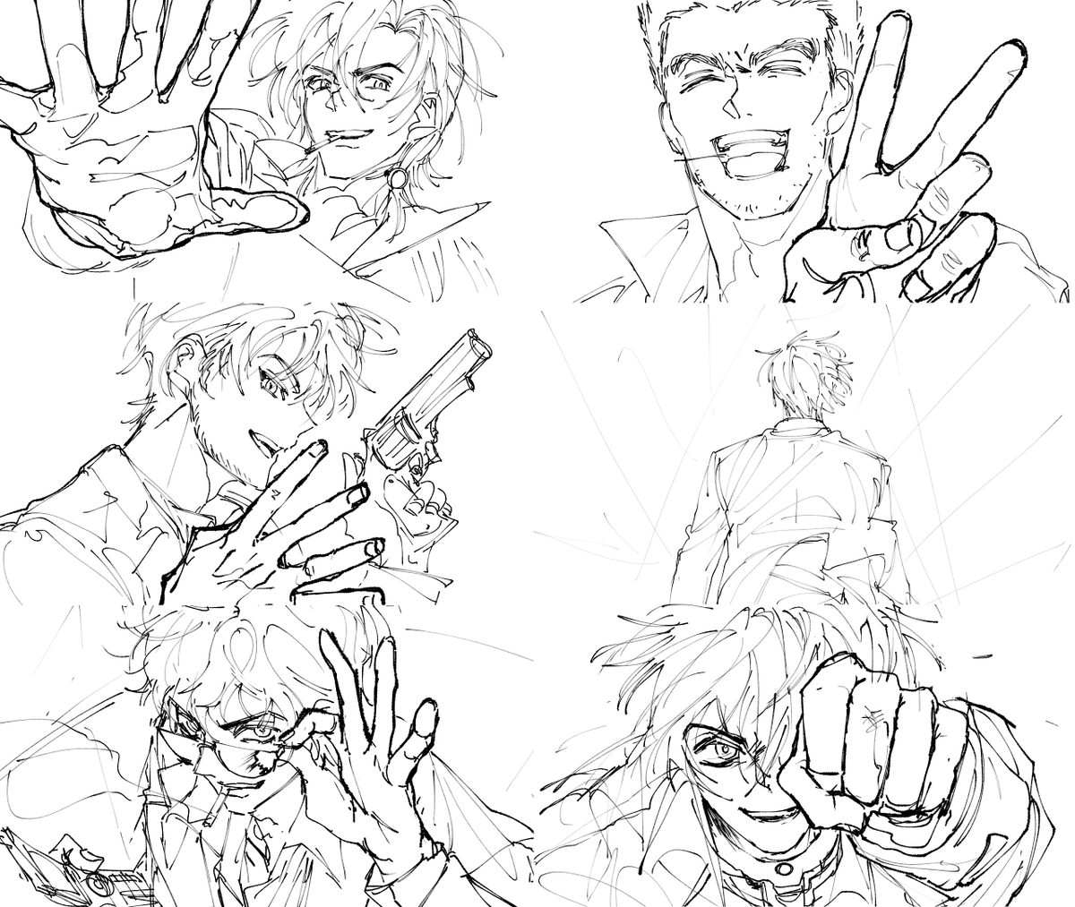 304 393 동기조 카운트다운 선화만 모아보면 이러케!! 순서는 '그 순서' 맞구요(...) 아무로 등짝은 제로티 포스터 참고해서 그렸어욧! 22/07/13 00:24