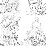 동기조 카운트다운 선화만 모아보면 이러케!! 순서는 '그 순서' 맞구요(...) 아무로 등짝은 제로티 포스터 참고해서 그렸어욧!