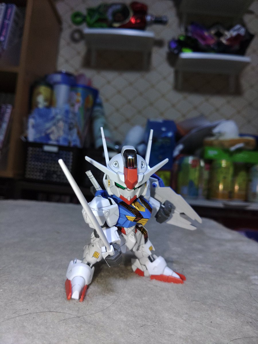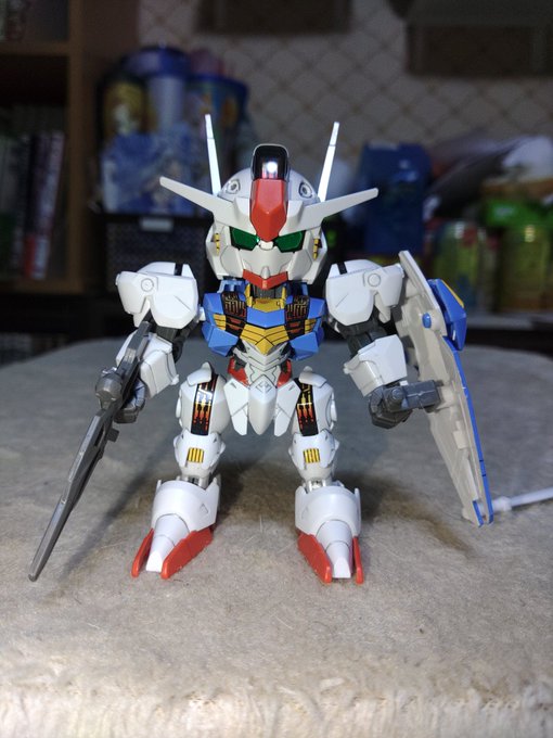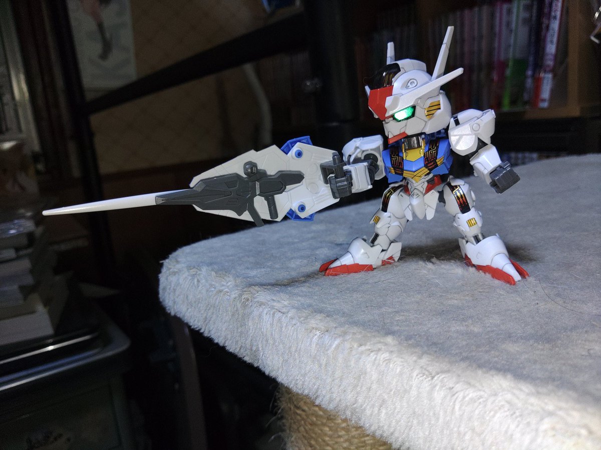 SDEX ガンダムエアリアル 完成 久しぶりにこのシリーズ組んだけど中々に可動域が広くて良き( •̀ω•́ )✧ 後はSDCSの方でもエアリアル出て欲しいな〜 #ガンプラの画像貼るとRTされると聞いて