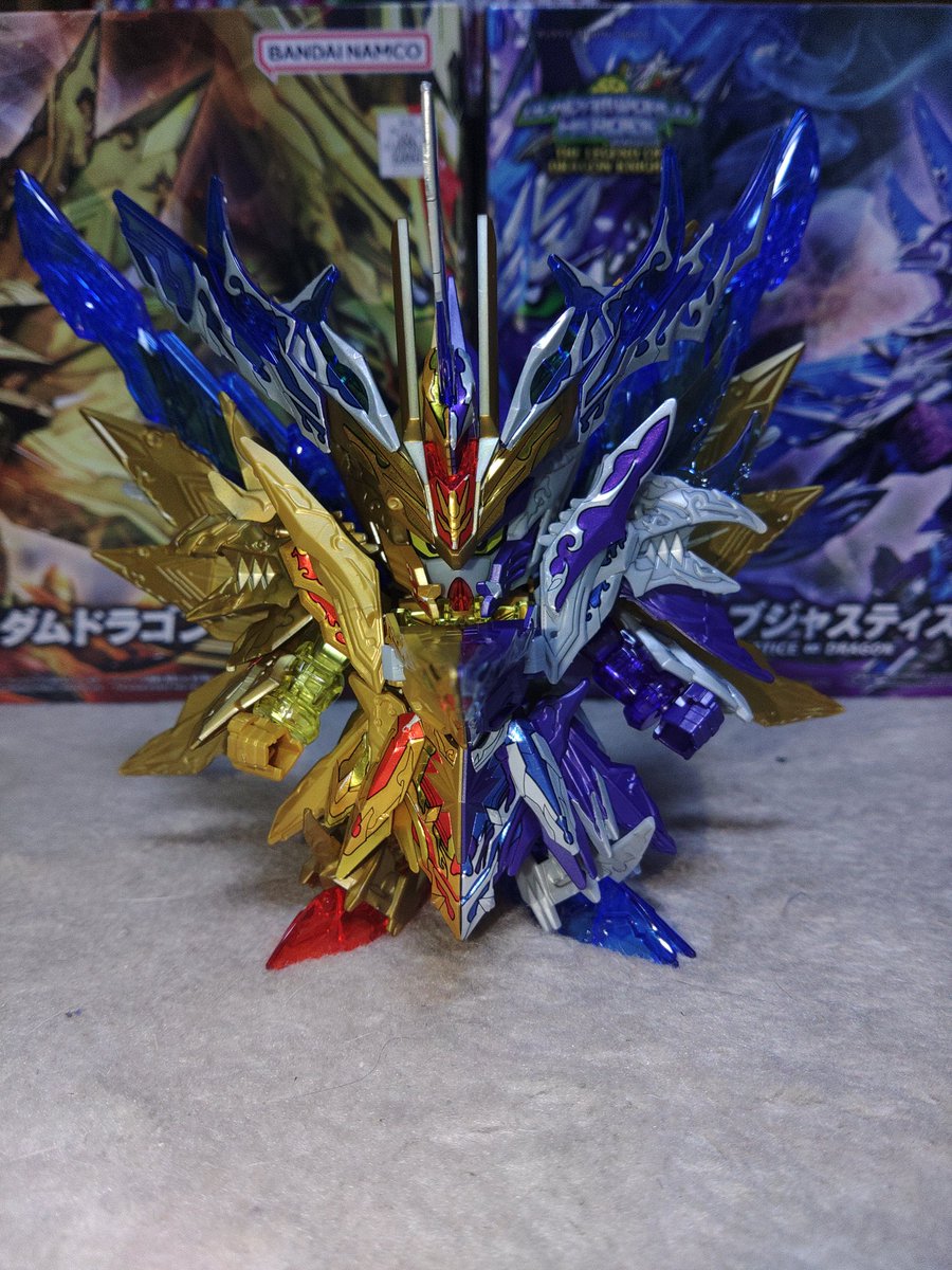 オルタナティブジャスティスインフィニットドラゴン完成&スペリオルフォーミュラーファイナルドラゴンへ合体 うんカッコイイんだけど配色のせいか仮面ライダーWルナジョーカー感がスゴいw #ガンプラの画像を貼るとRTされると聞いて #ガンプラは自由だ