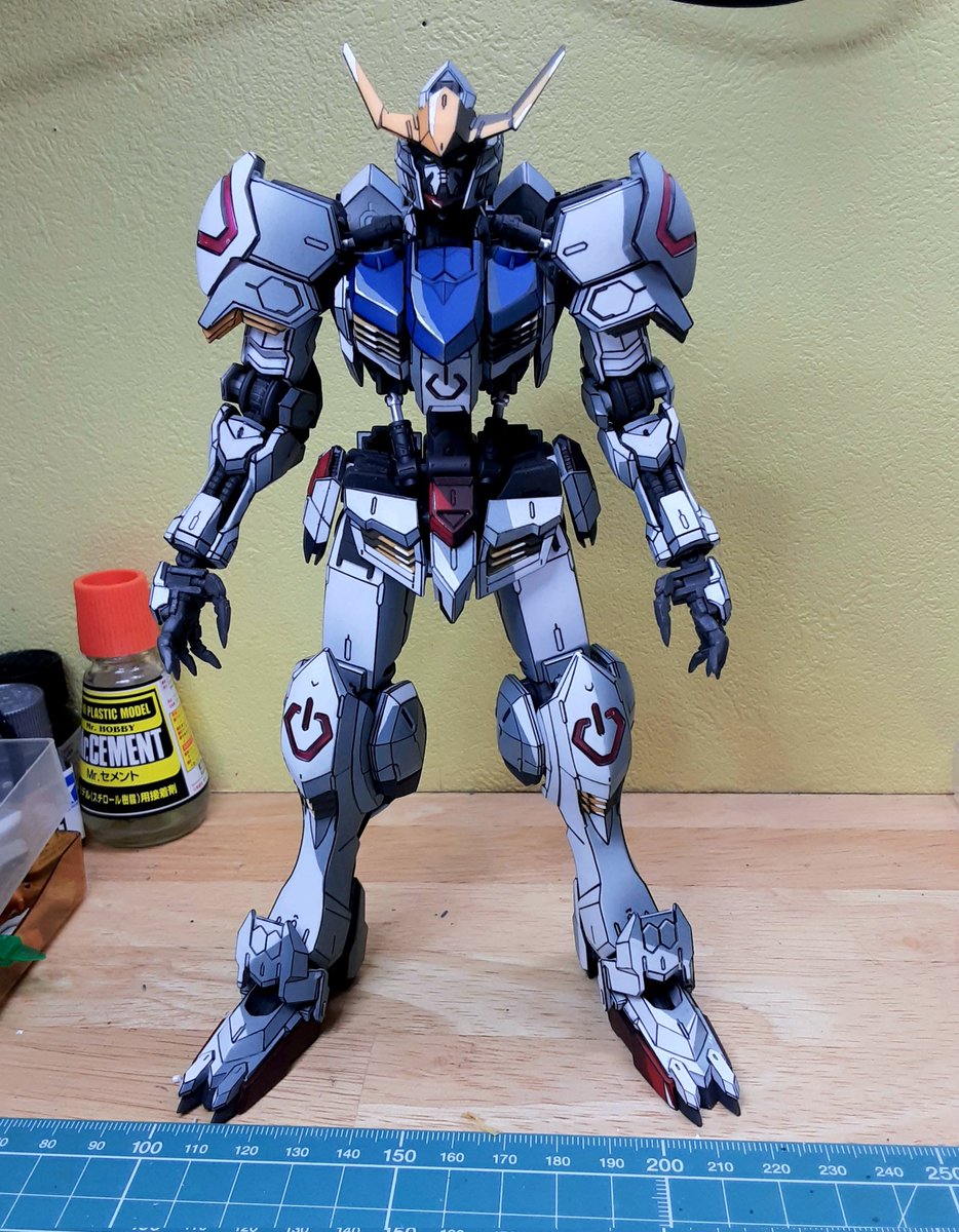 1/100バルバトスルプス アニメ塗り完成しました! 前作のクスィーと比べると、やっぱりエッジ線のボリュームがちがいますね😉 #ガンプラ #アニメ塗り #イラスト風模型 #鉄血のオルフェンズ #ガンプラは自由だ