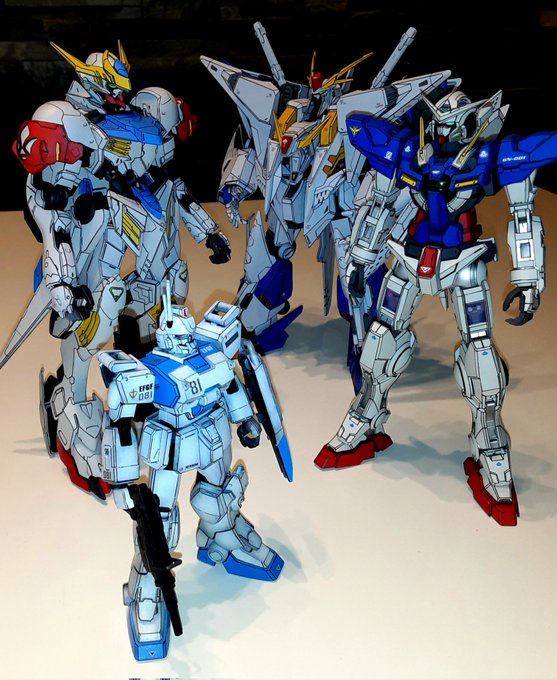 8月アニメ塗り成果品です! 6日バエル 15日シナンジュスタイン 20日ガンダム 25日バルバトス に完成しましたっ‼️ 9月もがんばります😉 #今月作ったプラモ晒そうぜ