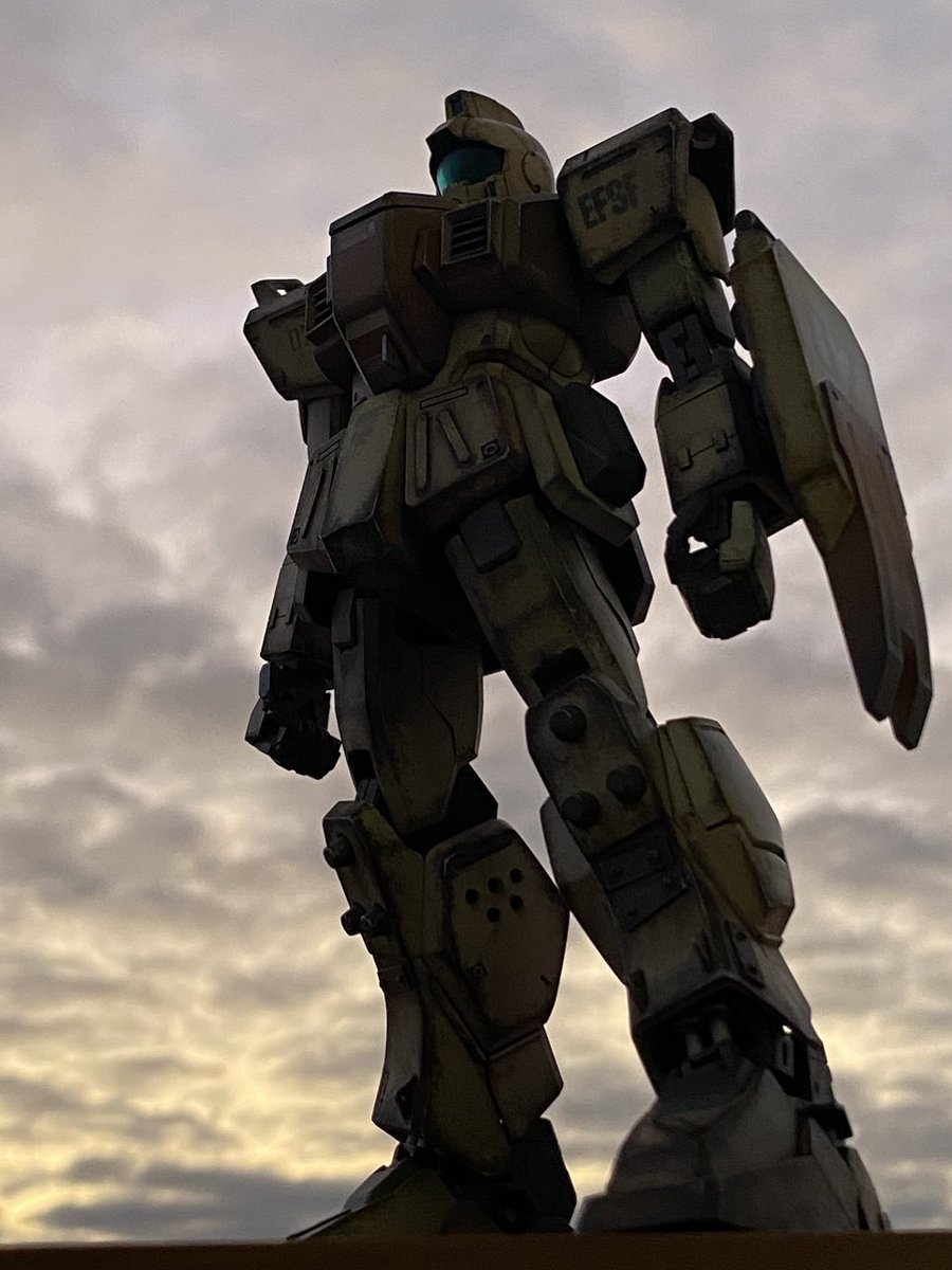 #曇天の休日早朝は撮影日和 よって #ガンプラ屋外撮影友の会 HGジェガン/マンハンター仕様でおはようございます🙇♂️ #閃光のハサウェイ #ガンプラ #マンハンター #ガンダム #gunpla #gundam