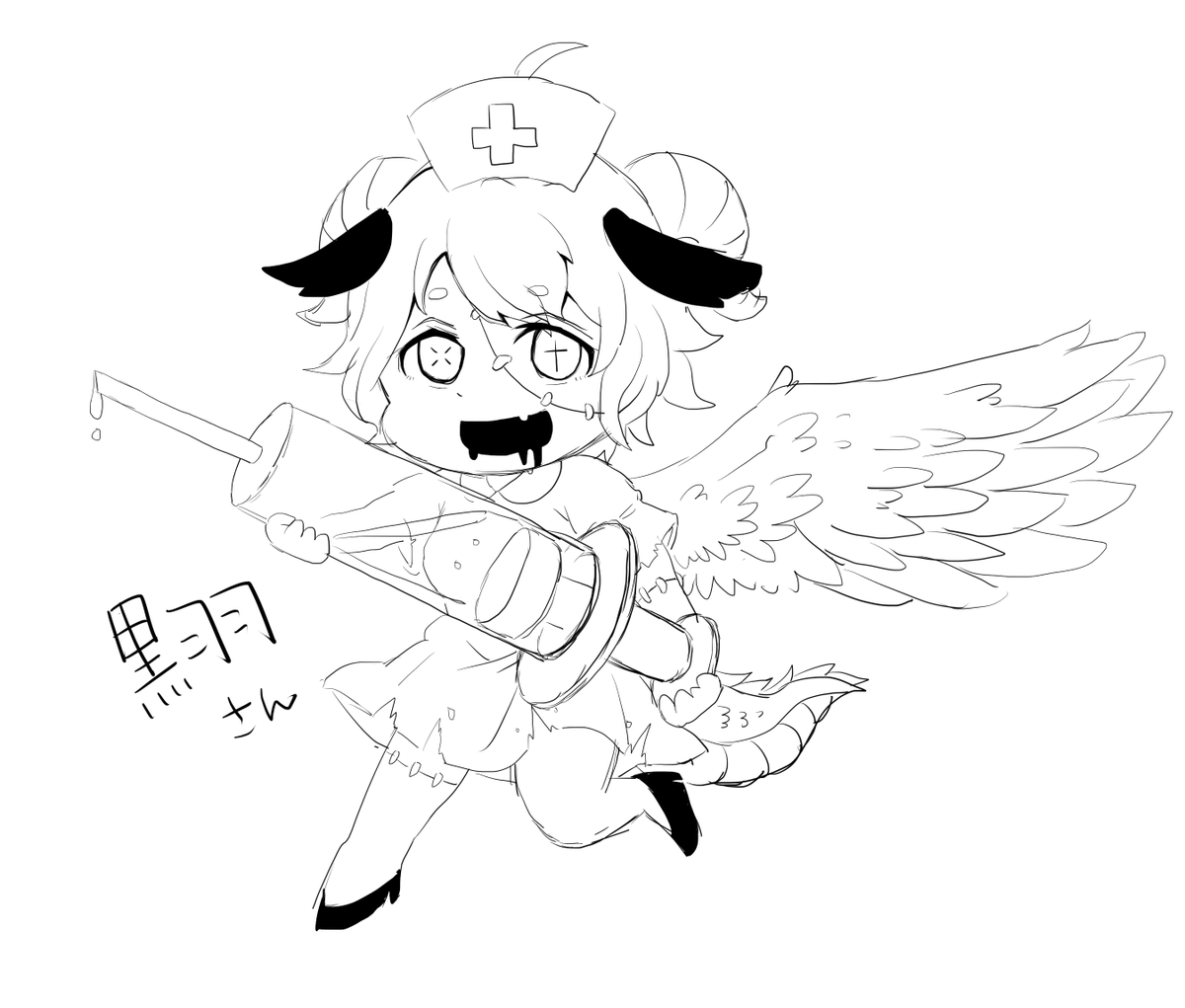 #一次創作者が見たい自創作の二次創作 @SlaughterHourさんのお家の子を描かせていただきました!!取り急ぎSDのラフ!!ポーズとか彩色とかやったりしますのでドウゾゴキガルニ!!