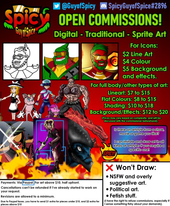 "You need something done, that's good looking, not pricy? I've got you the Guy, you better get SPICY!" Please Like and RT!❤️🔁 DeviantArt: bit.ly/3Dxf8gk #commissionsopen #digitalart #commissionart #commissioninfo #ArtistOnTwitter #lookingforartist #lookingforcommission
