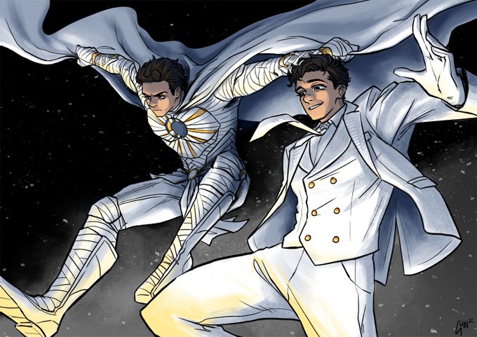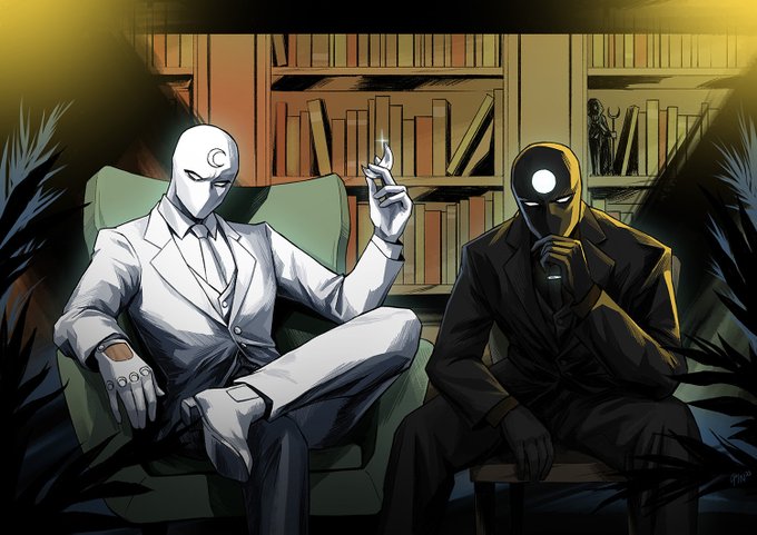 "Trying to act normal in public but there's voices in my head and a big freaky monster is following me" gang unite~ #EddieBrock #Venom #Symbrock #StevenGrant #MarcSpector #Khonshu #MoonKnight