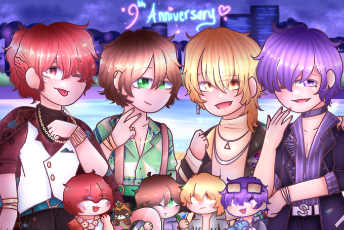9th anniversary ! 🚢💚💜❤️💛 #浦島坂田船9周年 #浦島坂田船結成9周年 #うらたぬ王国の美術館 #しまーと #坂田です #センラの絵ぇやん