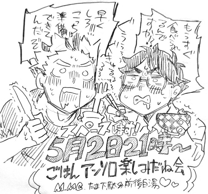 来週火曜夜、GWつまりイベント直前!つまり兎赤ごはん🍚アンソロ頒布直前!楽しみどぅあね~~~❣️❣️ ということで前後さん(@zengosayu45)と私で(あとその時喋れそうな方いらっしゃれば)皆様のサンプル読みながら「いいゾ~~!!」って喋るスペースをします🥳 よければドゾよろしくお願いします!!