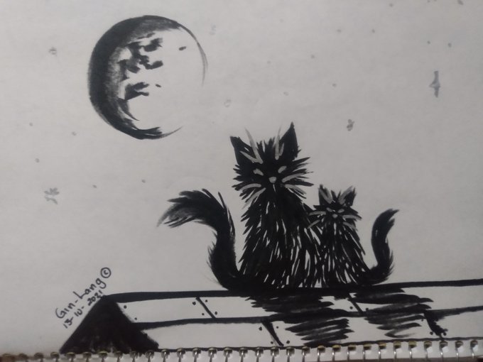 0 1 #inktober2021 #roof #cat #animals 21/10/14 07:58