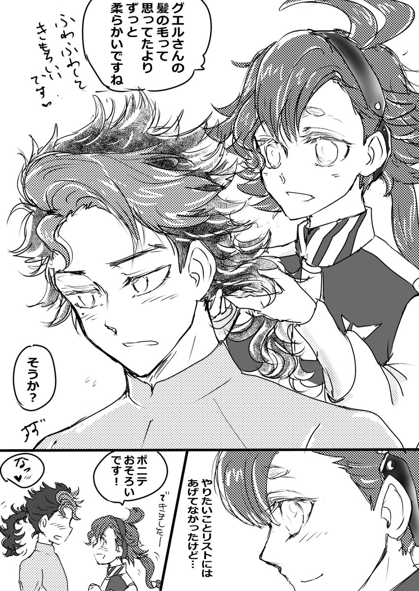 平和な世界線のグエスレ グエルくんとスレッタちゃんでおそろいポニテ #水星の魔女