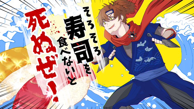 14 43 #乾忍相書 (修正しての再掲失礼します) 神ゲーやってみて欲しいと思ったらいつの間にか描いていました。いっぱいお寿司食べて欲しい🍣 22/01/16 23:35