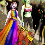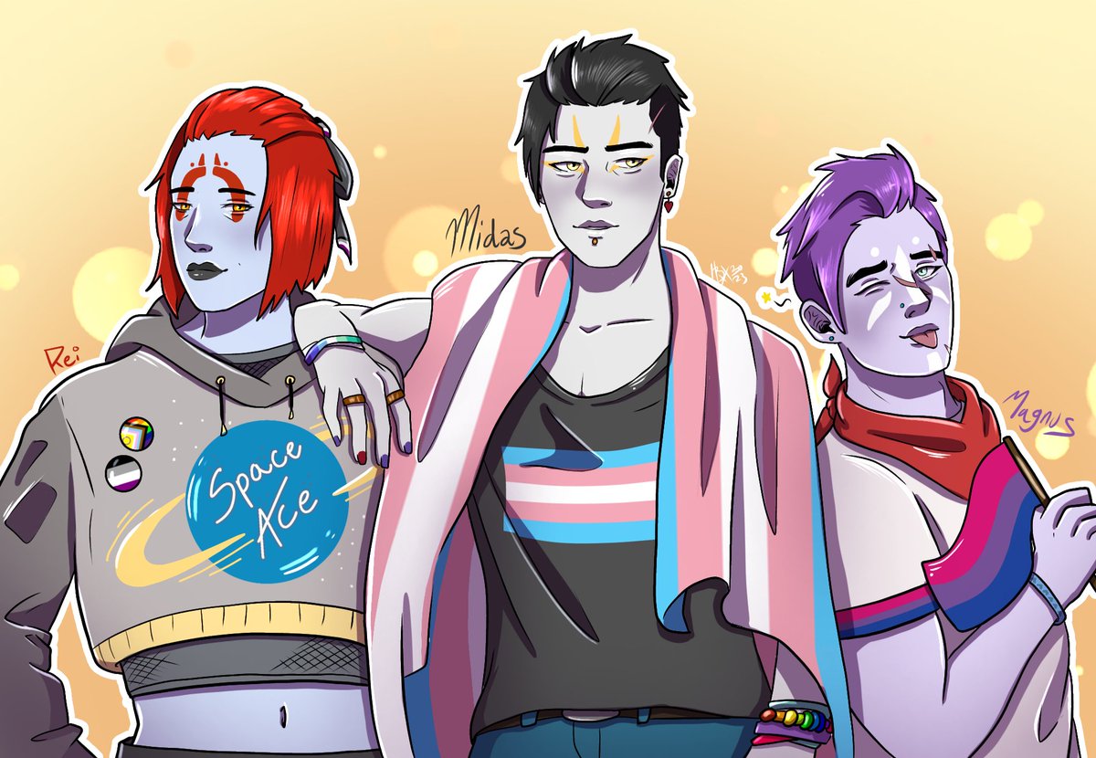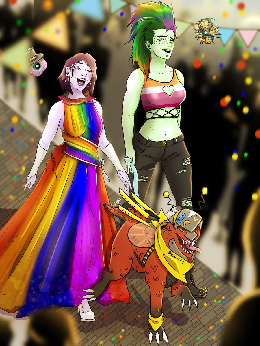 Happy Pride to @SpicyLilNoodle & @bufftitanwife !! Nezra and Xera are out enjoying the local city parade! 🌈🌈🌈 --- #destiny2 #Destiny2Art #digitalart #ibispaint