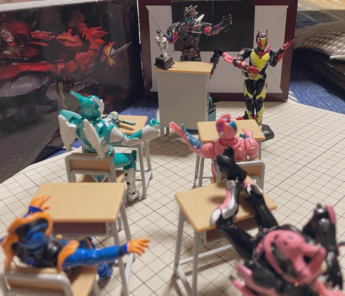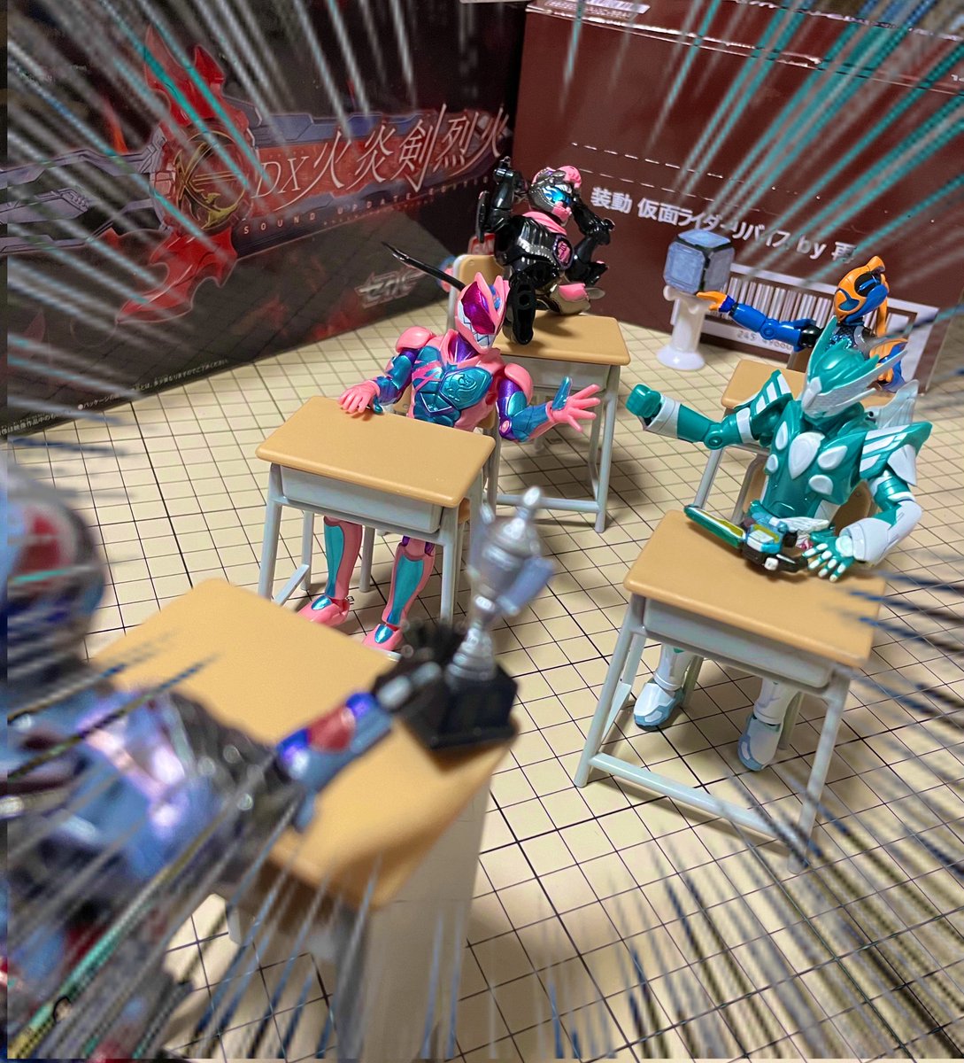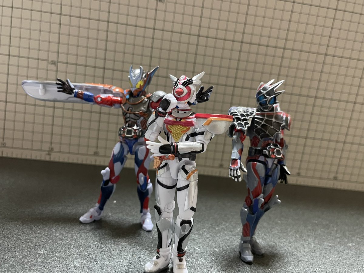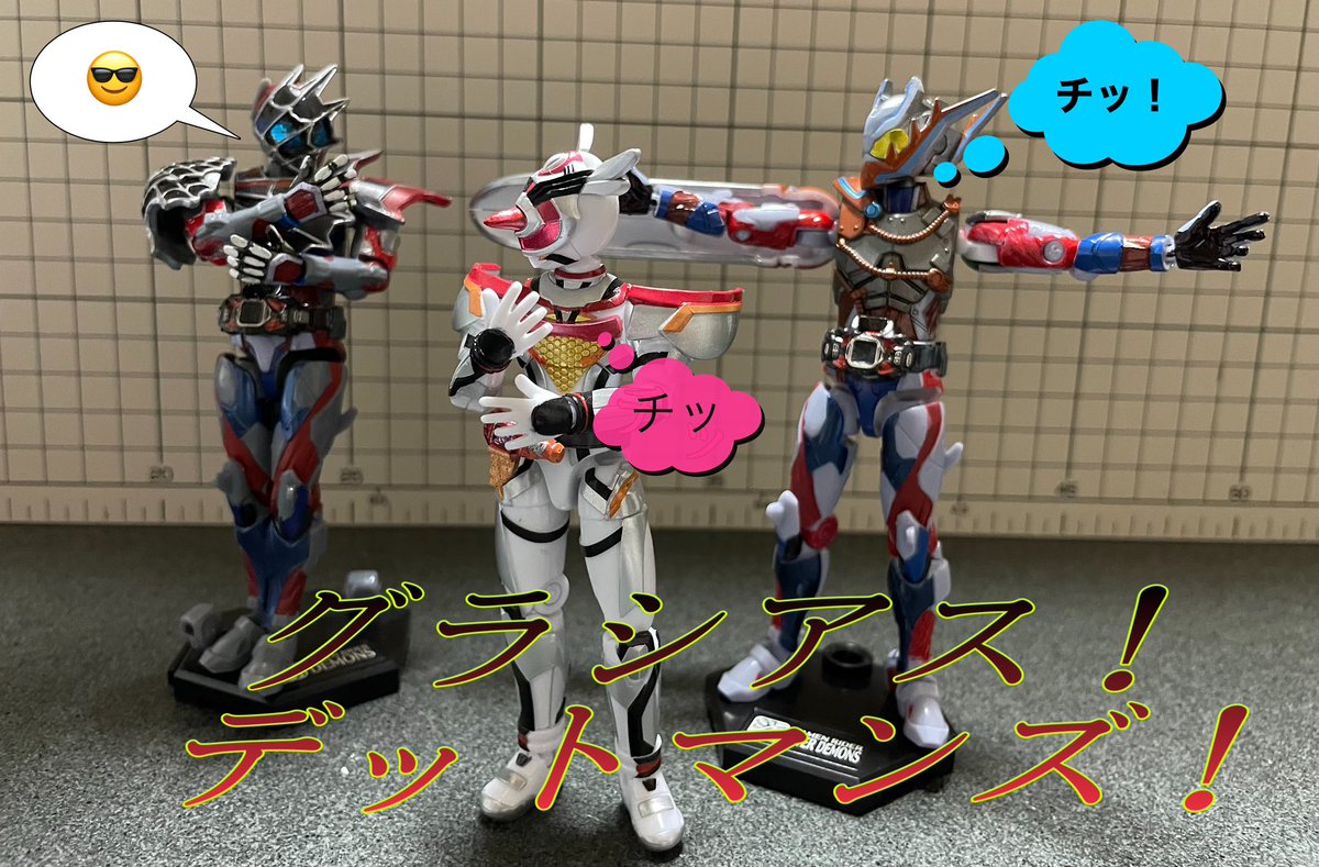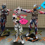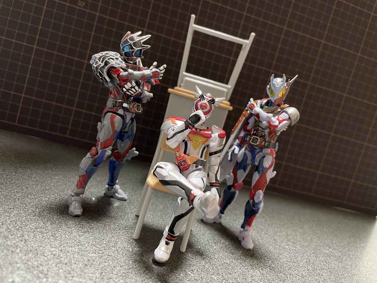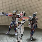 『もし、本編で元デットマンズが共闘してたら…』 映画ではデットマンズが少しだけ復活してたから3人変身した姿で共闘とか観てみたかったな〜 (ギフ様は印刷するのが面倒だったので机で再現させて頂きました。) #オモ写 #仮面ライダーリバイス #装動