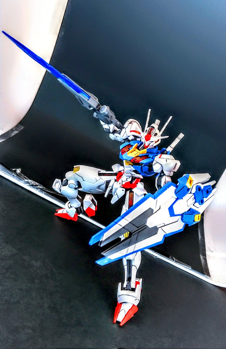 エアリアルスミ入れ完了(*`・ω・)ゞ 色んなポージング取れて楽しい! ビットも色んなところに格納できるからかっこよくなる!! #ガンプラ #ガンプラ好きな人たちと繋がりたい #ガンプラの画像貼るとRTされると聞いて #エアリアルガンダム