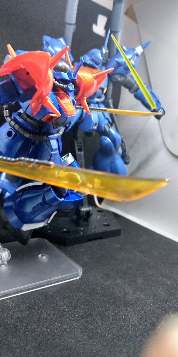 型式番号 MS-08TX イフリート改 この色いいな!!かっこいい! モノアイのザクII ケンプファーと並べたけど映えるね〜 #ガンプラ #ケンプファー改 #ガンプラの画像を貼るとRTされると聞いて